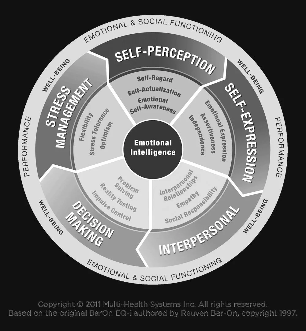 The Emotional Quotient Inventory 2.0 measures your emotional intelligence in five categories: self-perception, self-expression, interpersonal, decision-making, and stress management. Together, these comprise your EQ. Recieve a score and a personalized report to develop deeper emotional intelligence as a leader.